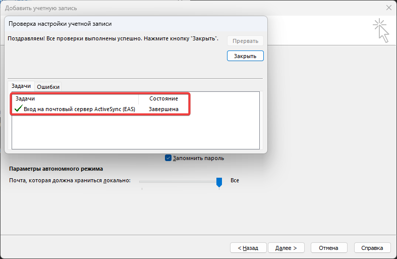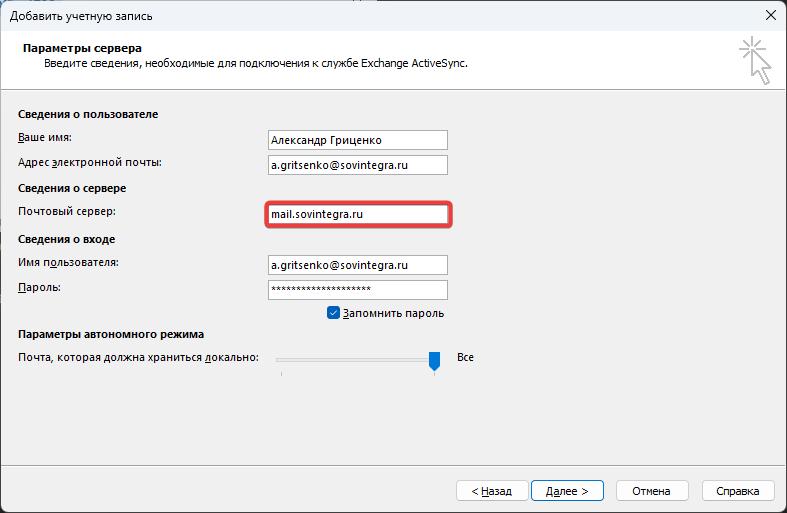 Exchange Active Sync (Outlook) mail.sovintegra.ru 443 SSL