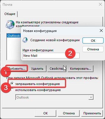 1. Если у вас есть существующий ящик в Office365, то сначала добавьте новый профиль: